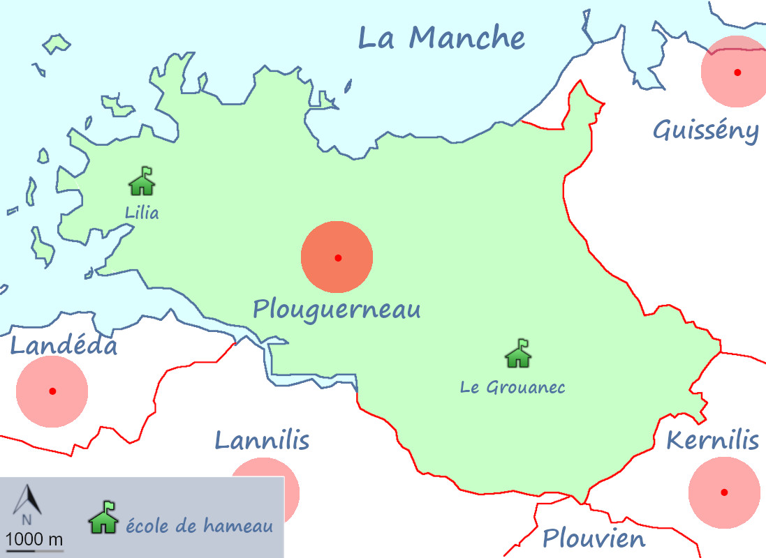 L’école mixte du Grouanec se trouve dans une maison louée. Elle est prévue pour 60 élèves et en accueille 101 (98 entre 6 et 13 ans et 3 au-dessus 13 ans). 91 sont présents lors de l’enquête.