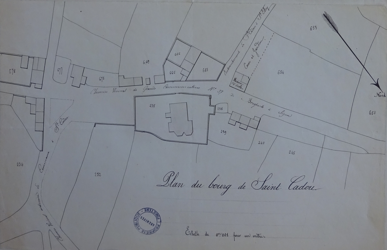 Un rapport effectué par la mairie en 1877 indique que 602 enfants âgés entre 6 et 13 ans sont scolarisables dont 153 sur la section de Saint-Cadou.