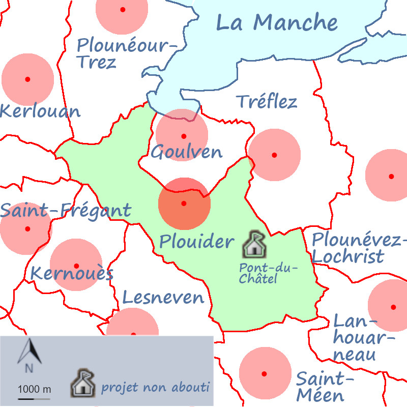 Pont-du-Châtel est un petit hameau de 150 habitants environ, distant de Plouider de deux kilomètres par un chemin vicinal en très bon entretien, hiver comme été.