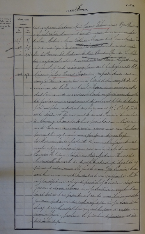 Le 12 avril 1881, Julien Prioux acquiert quelques biens à Rosnonen pour un montant de 3 025 F.